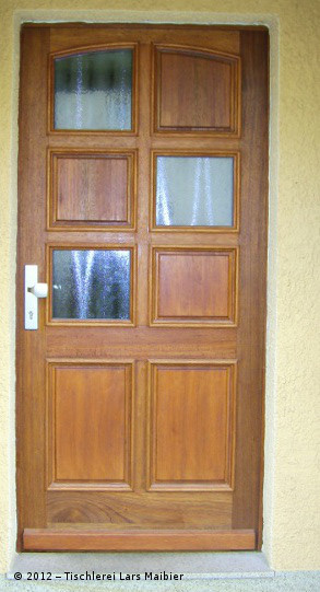 Haustür in Meranti mit Sperrholzfüllung und Glas mit Sprossen